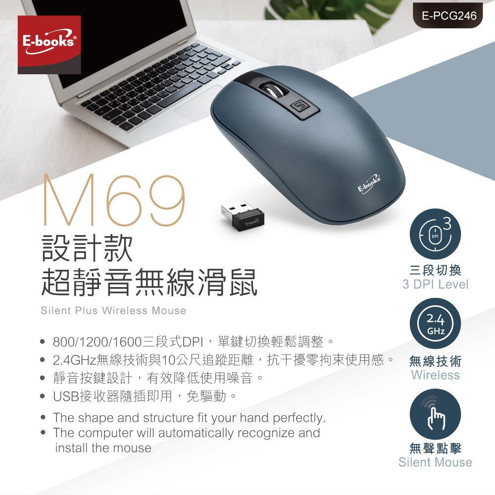E-PCG246 M69 設計款超靜音無線滑鼠-網路資訊圖