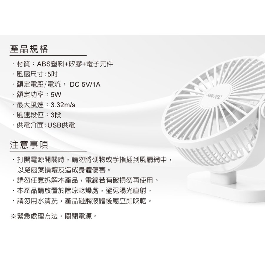 FF3 FAFATEC 5吋多角度USB桌面風扇-白 (4)
