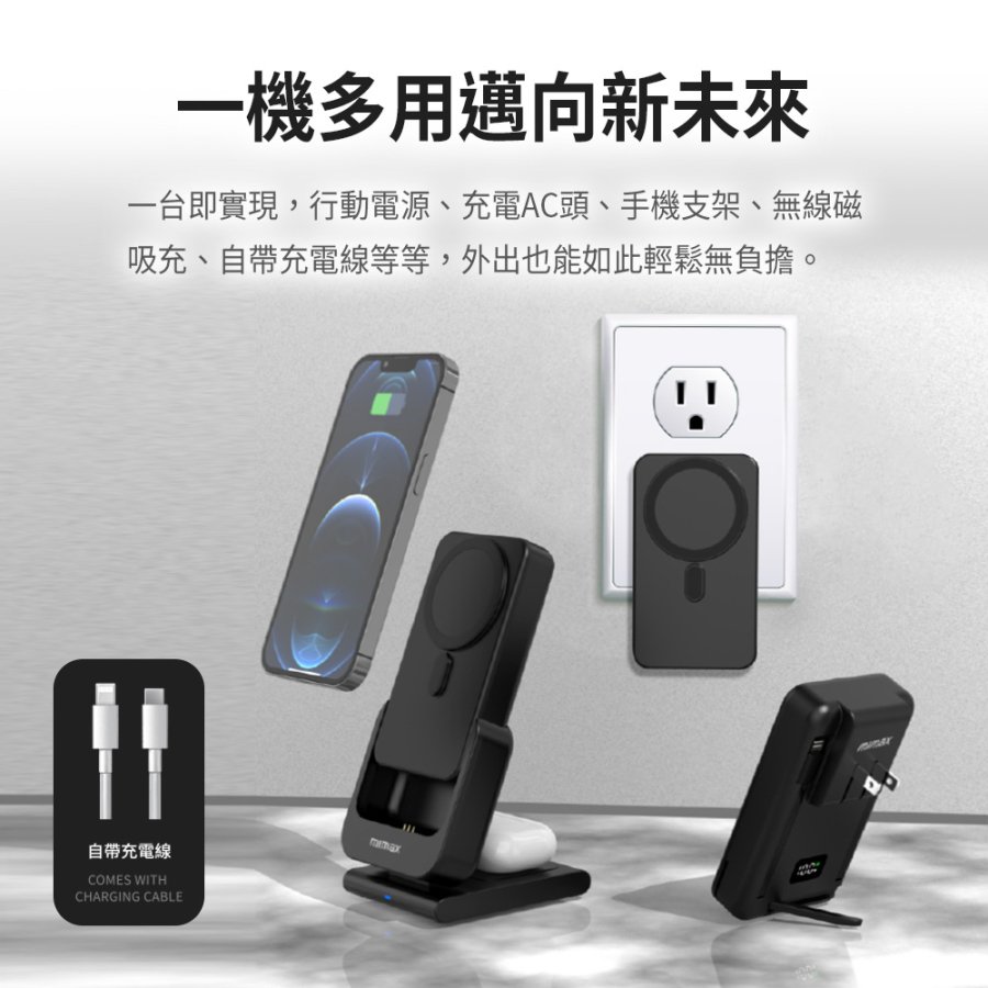 mimax磁吸無線充支架行動電源W20(自帶AC插頭)-15