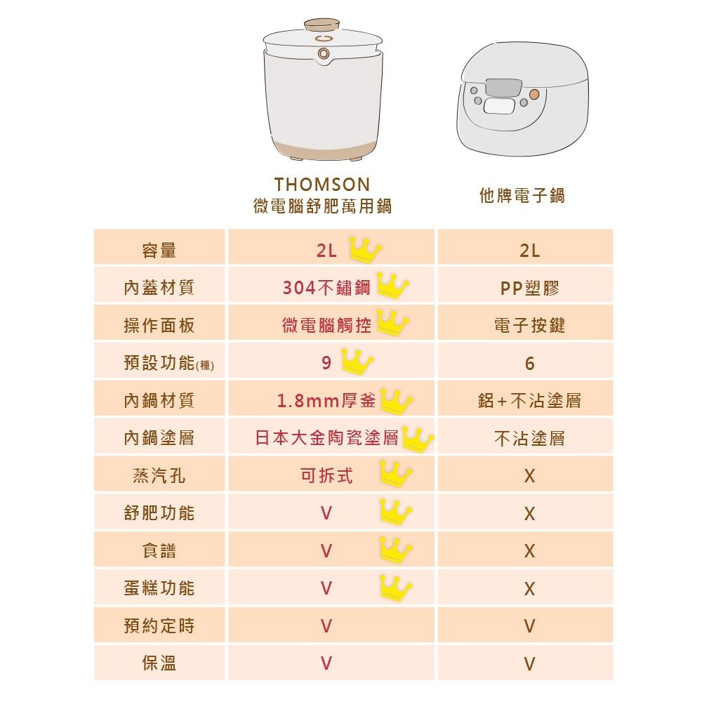 🥰2L容量,304不銹鋼內蓋,可拆易清洗