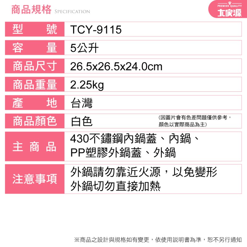 ⭐️大家源5L節能燜燒鍋 TCY-9115