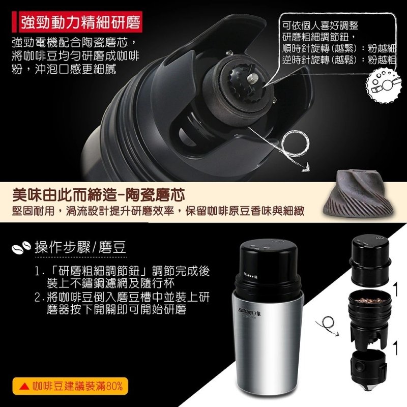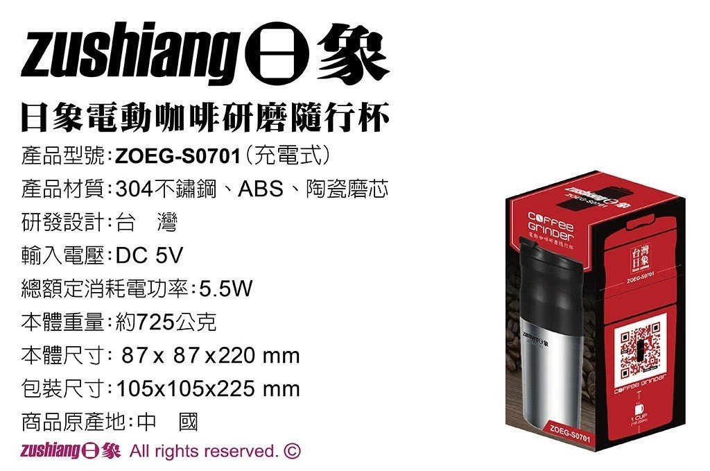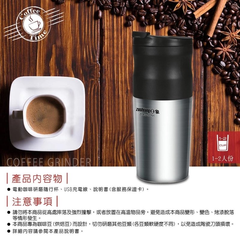 【日象】電動咖啡研磨隨行杯(充電式) ZOEG-S0701