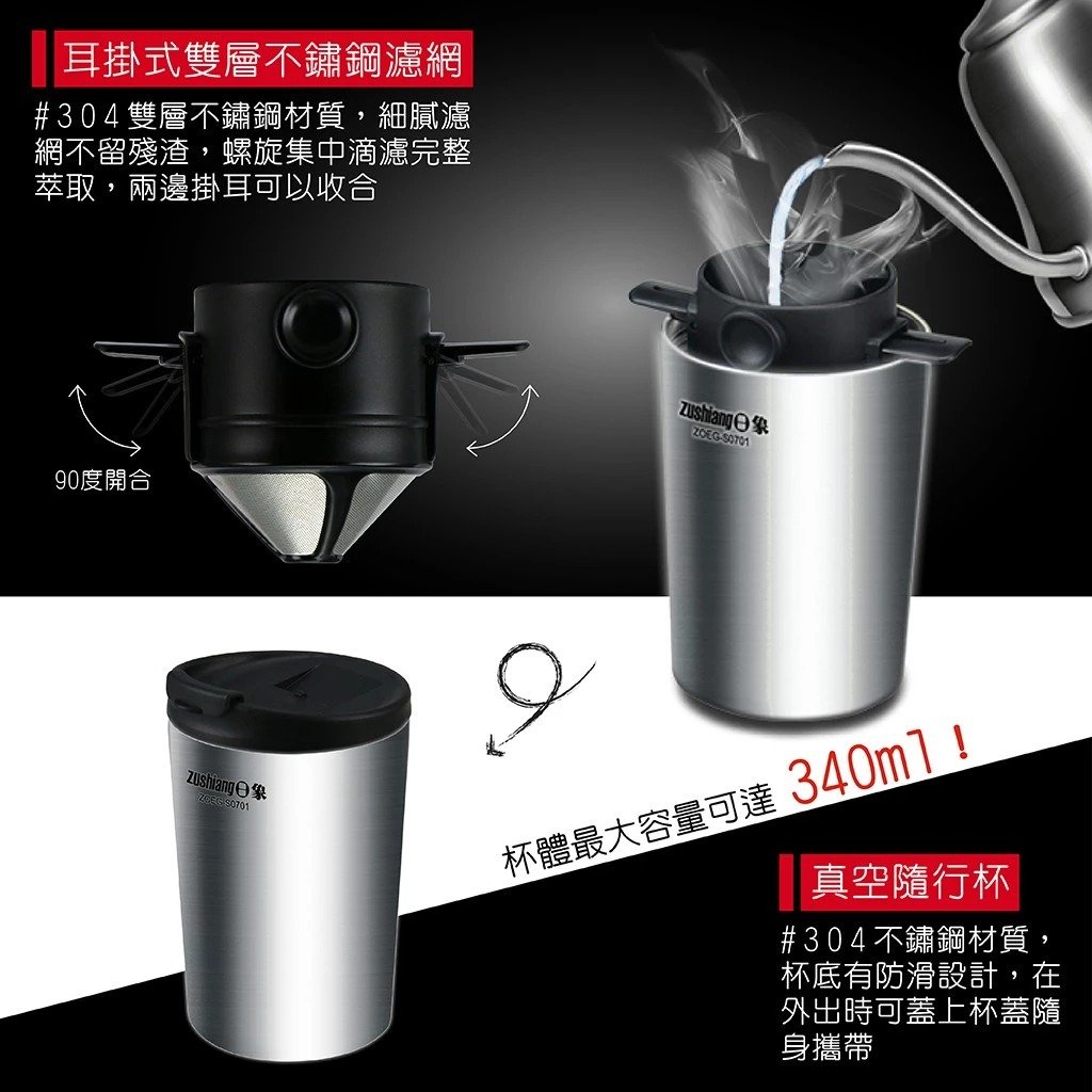 🥰耳掛式雙層不鏽鋼濾網,兩邊掛耳可以收合