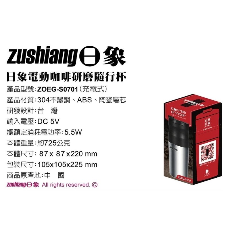⭐️日象電動咖啡研磨隨行杯(充電式) ZOEG-S0701