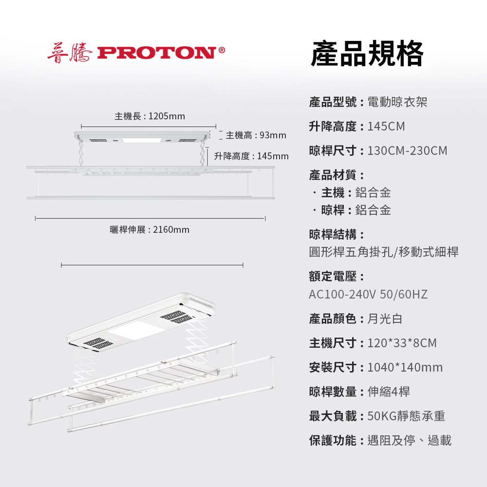 【PROTON普騰】鋁合金智慧升降電動晾衣架