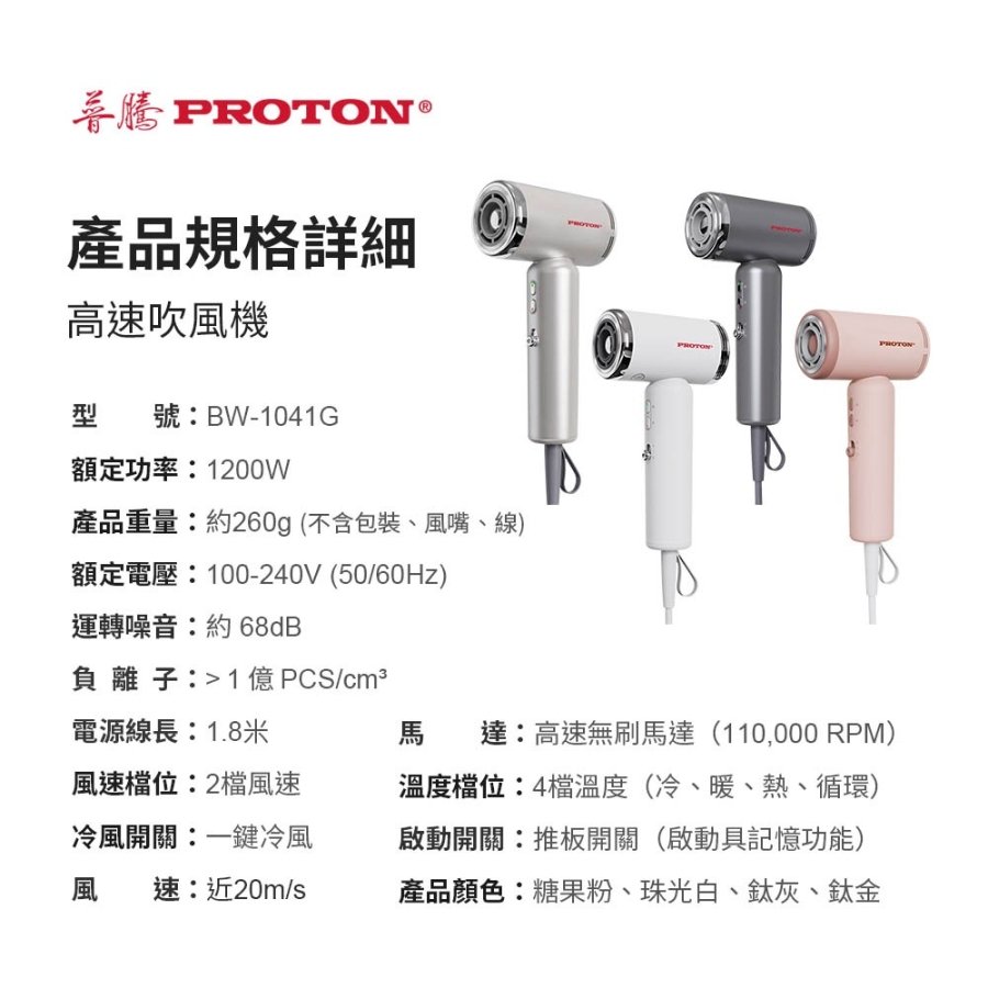 【PROTON普騰】負離子高速吹風機-國際電壓 BW-1041G