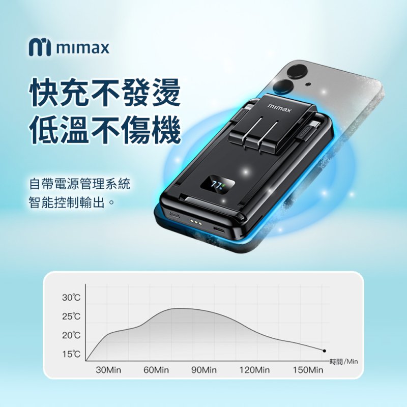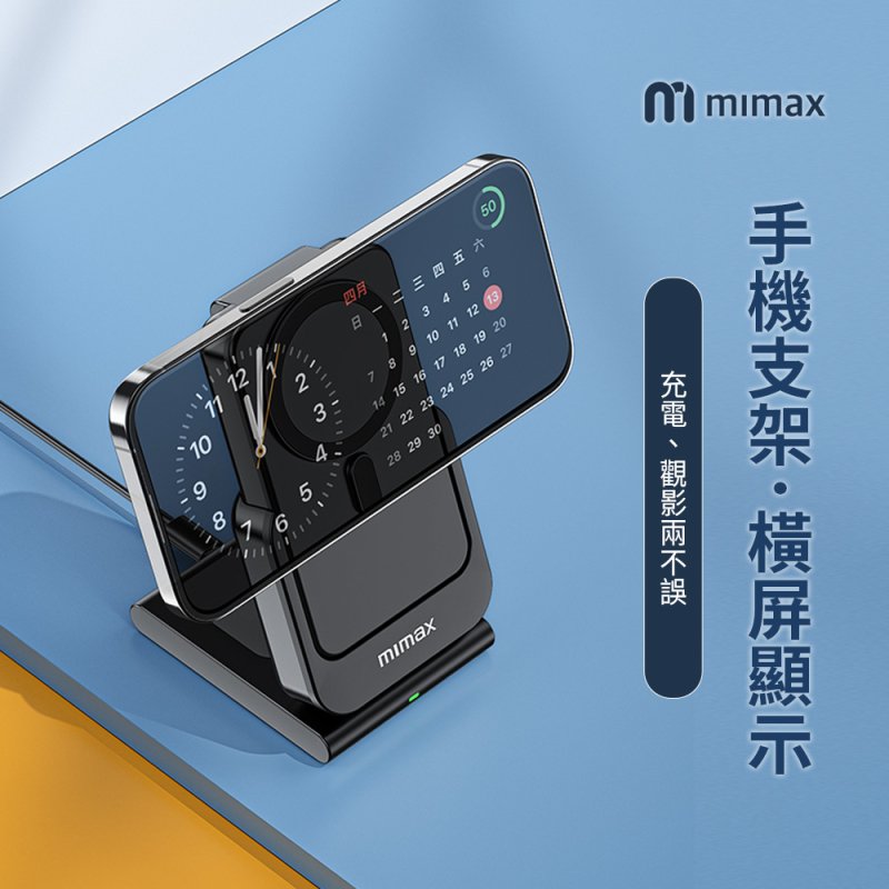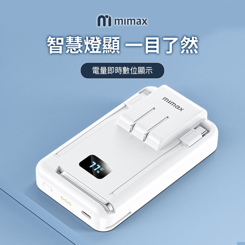 【米覓mimax】三合一磁吸無線充支架10000mAh自帶插頭行動電源 W20