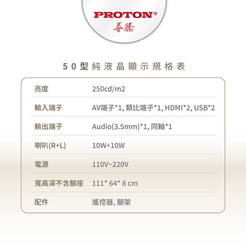 【PROTON 普騰】50型 純液晶顯示器