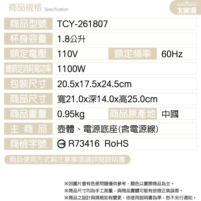 ⭐️TCY-261807 大家源1.8L雙層防燙快煮壺