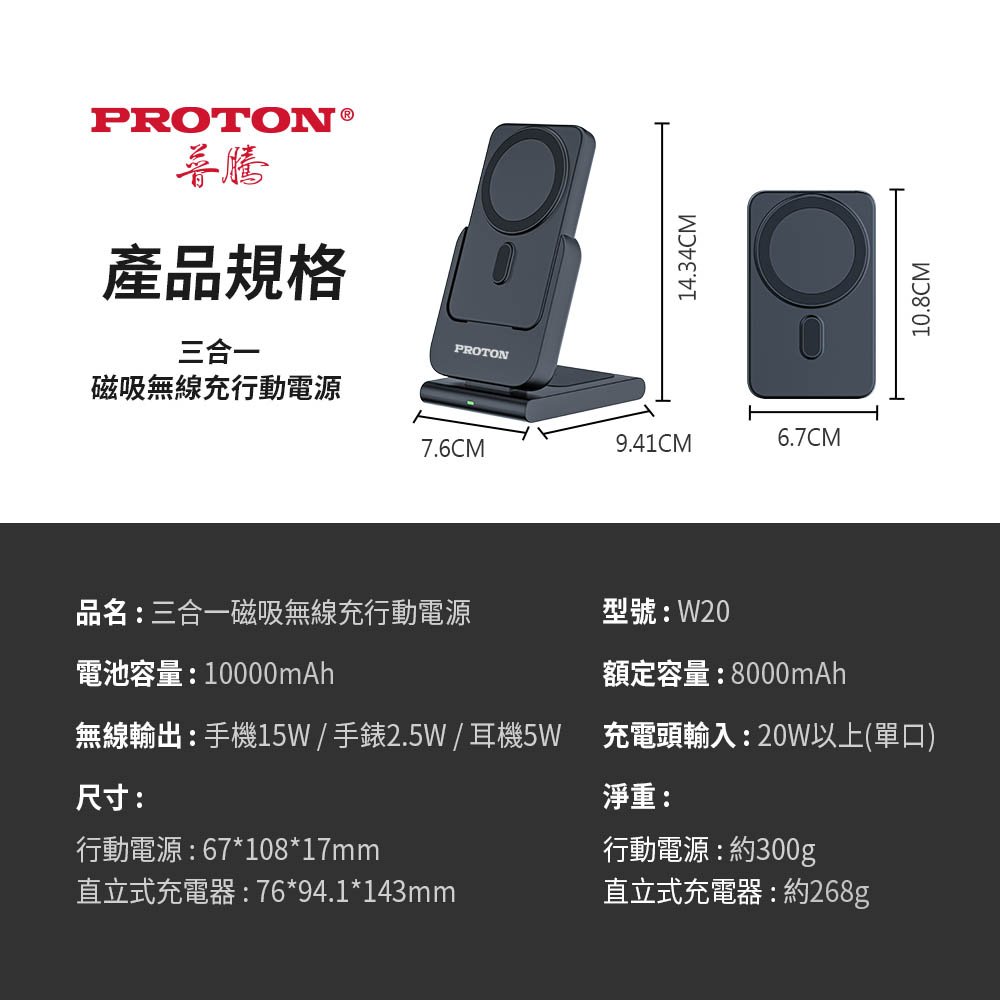 【PROTON 普騰】無線磁吸10000mAh行動電源 W20