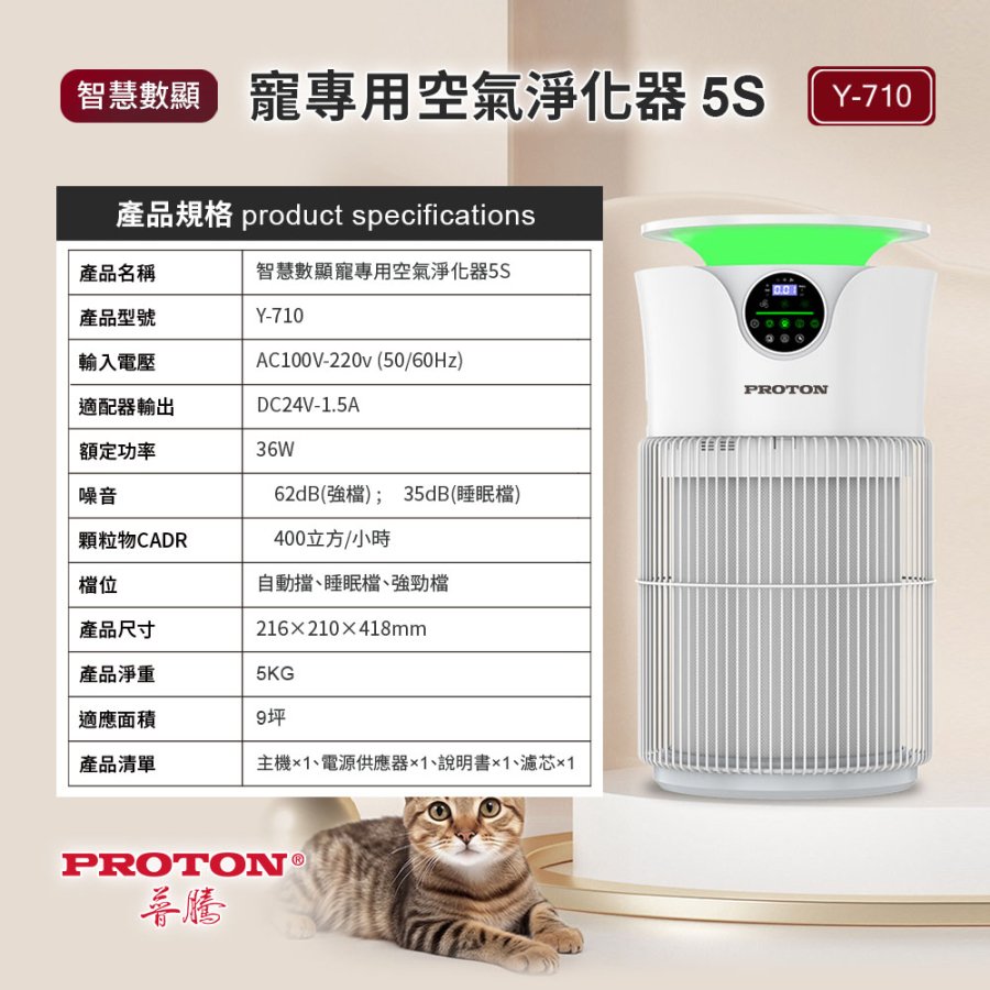 【PROTON 普騰】智慧數顯寵專用空氣淨化器Y-710
