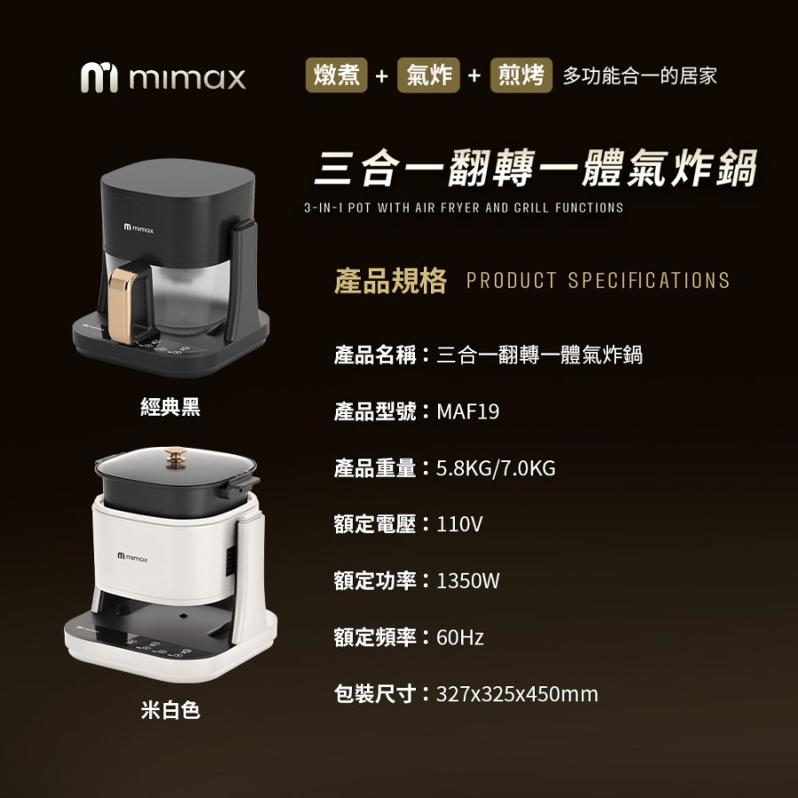 【米覓mimax】三合一多功能翻轉氣炸鍋 MAF19