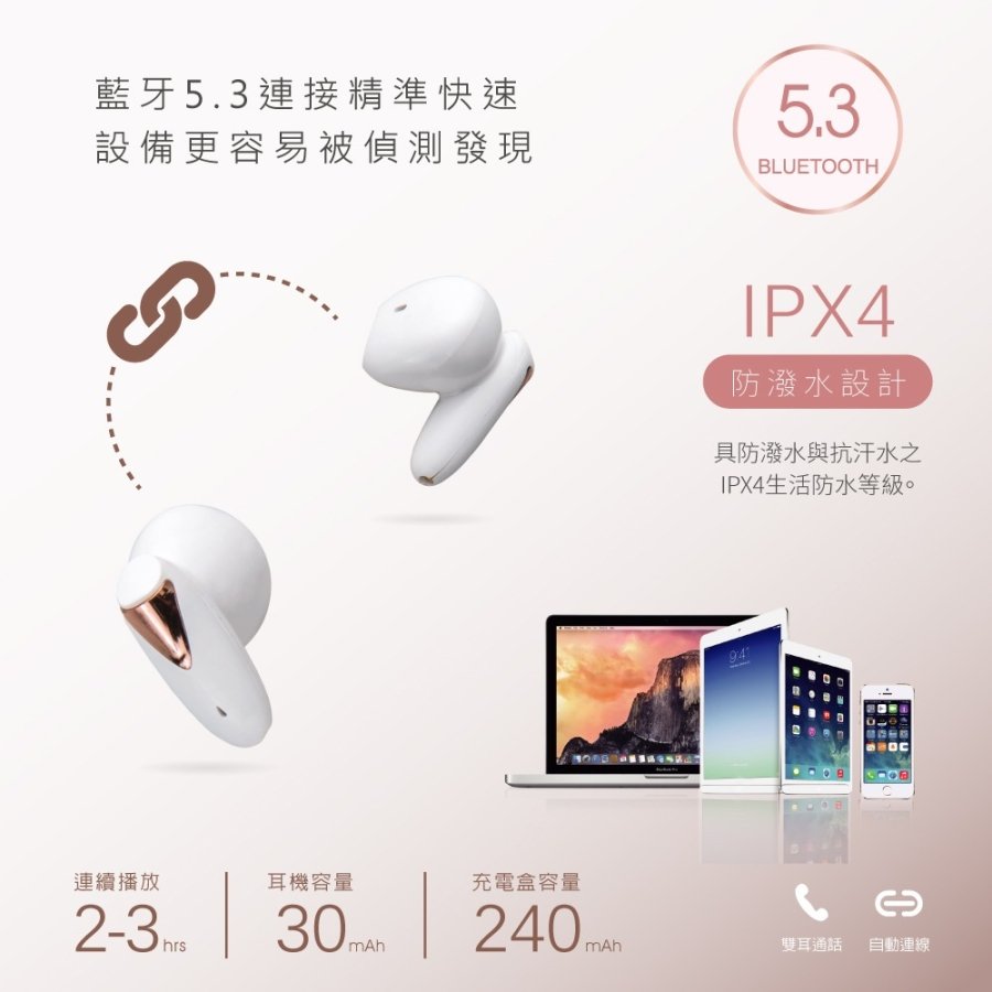 ✨️電池容量:30mAh(耳機) /240mAh(充電盒)