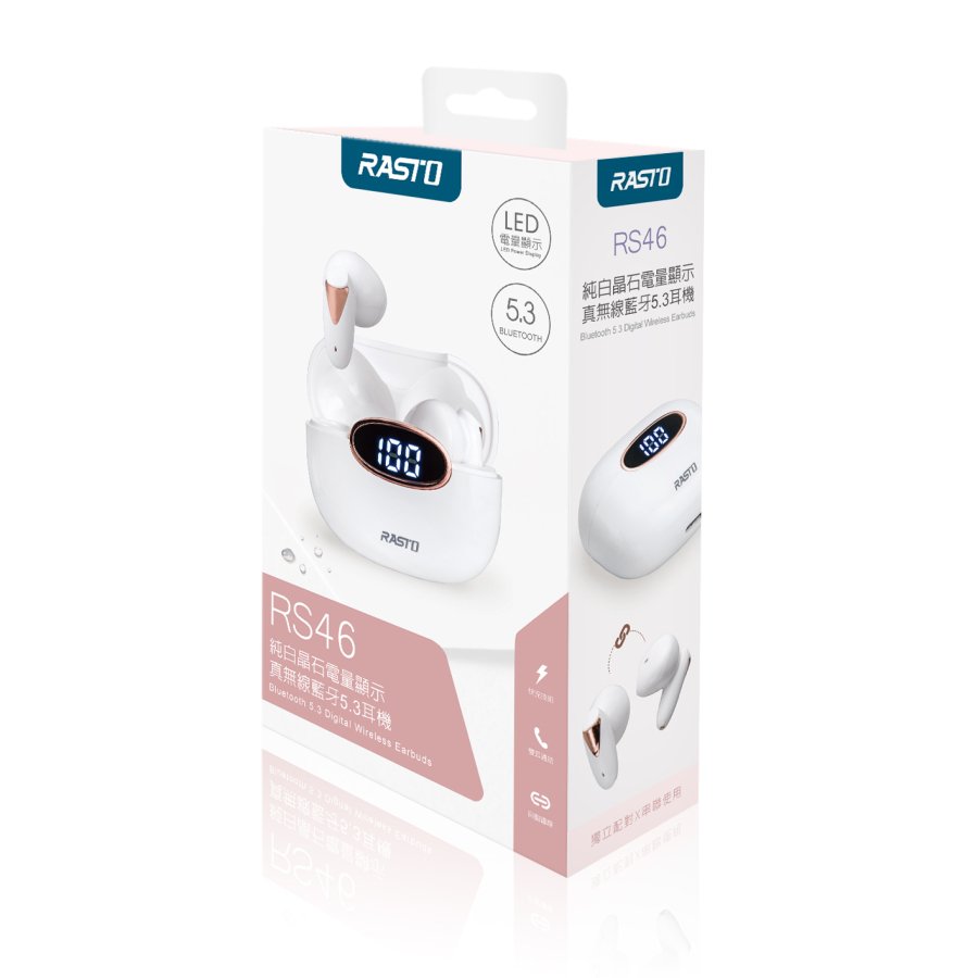 RASTO純白晶石電量顯示真無線藍牙5.3耳機 RS46